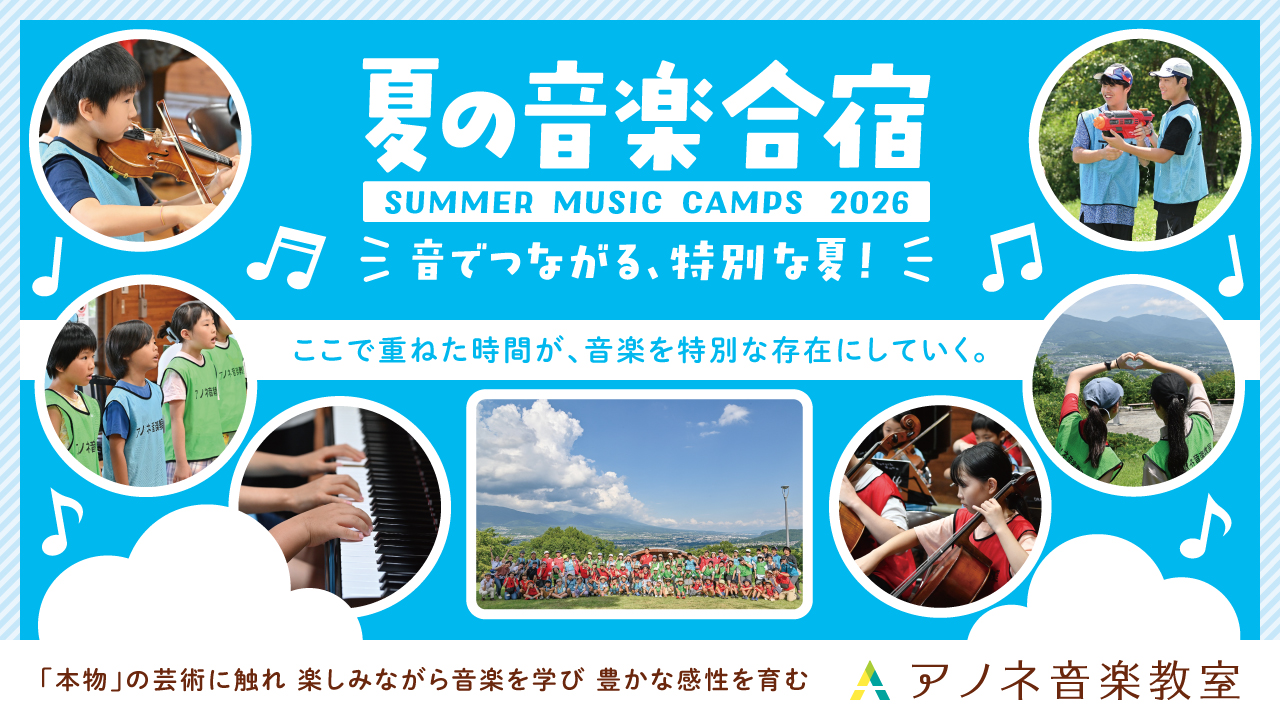 アノネ音楽教室の特別プログラム「夏の音楽合宿」。仲間と一緒に楽しく音楽を創りあげ、最高の思い出に!