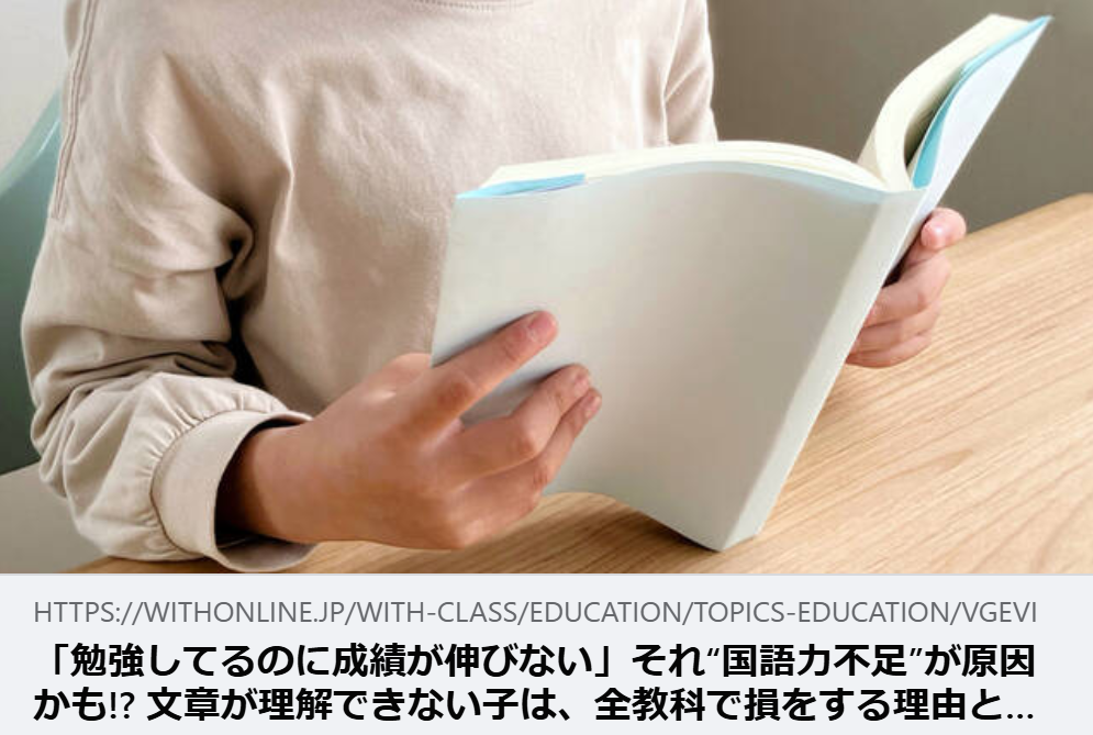 【掲載情報】「勉強してるのに成績が伸びない」それ“国語力不足”が原因かも!? 文章が理解できない子は、全教科で損をする理由とは?|with class