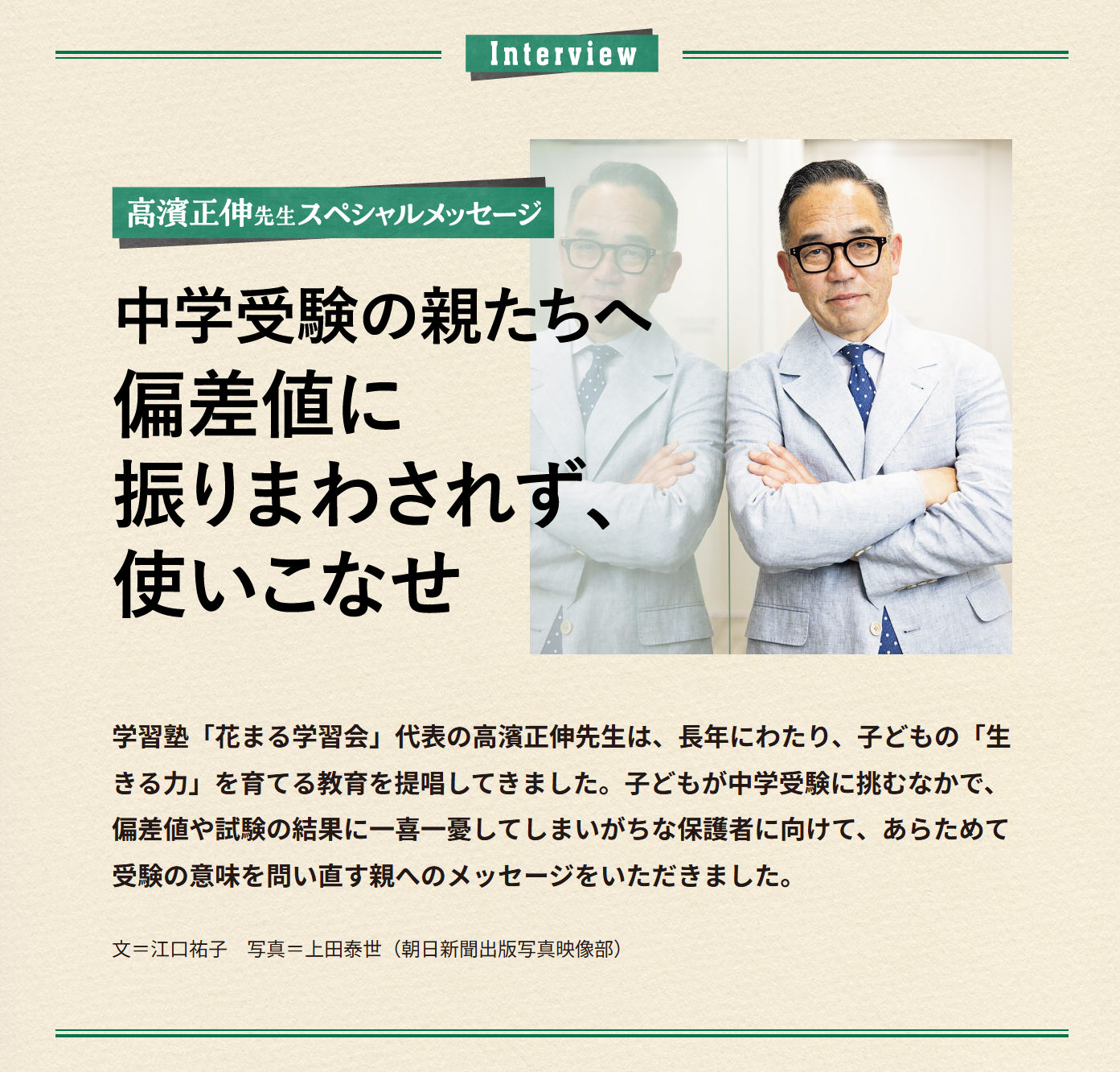【掲載情報】高濱正伸インタビュー「中学受験の親たちへ 偏差値に振りまわされず、使いこなせ」|AERA with Kids +