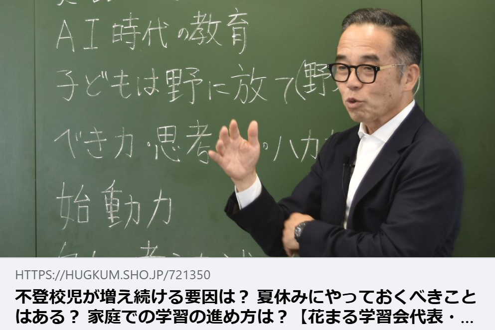【掲載情報】不登校児が増え続ける要因は? 夏休みにやっておくべきことはある? 家庭での学習の進め方は?【花まる学習会代表・高濱正伸先生に聞く不登校の“今”】|HugKum