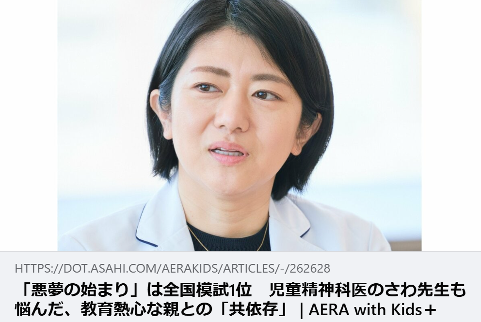 【掲載情報】「悪夢の始まり」は全国模試1位 児童精神科医のさわ先生も悩んだ、教育熱心な親との「共依存」|AERA with Kids +