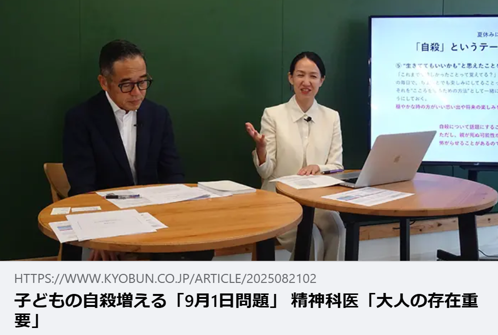 【掲載情報】子どもの自殺増える「9月1日問題」 精神科医「大人の存在重要」|教育新聞