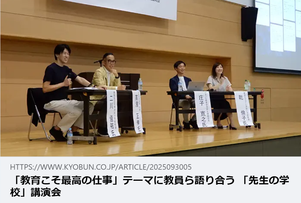 【掲載情報】「教育こそ最高の仕事」テーマに教員ら語り合う 「先生の学校」講演会|教育新聞