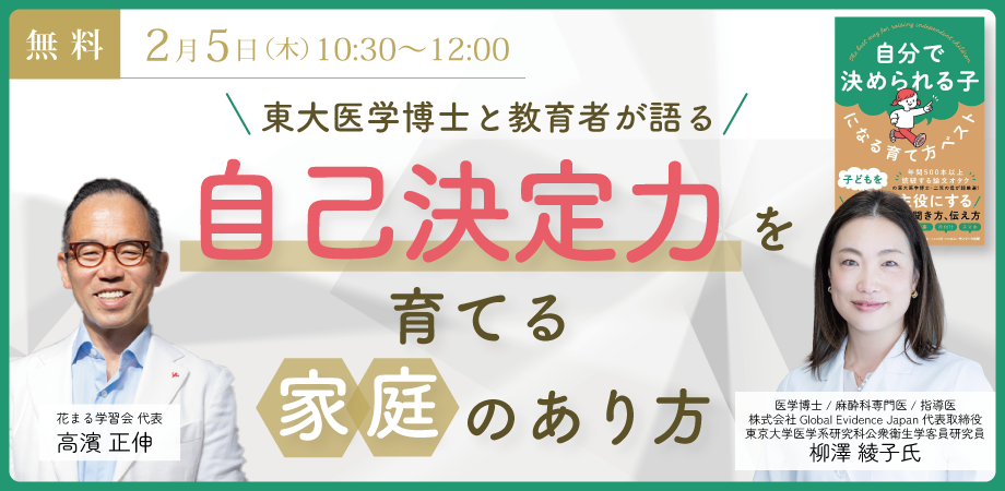柳澤綾子氏×高濱正伸「東大医学博士と教育者が語る 自己決定力を育てる家庭のあり方」