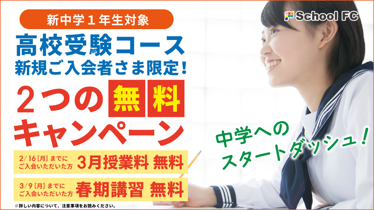 【小6】「高校受験コース」3月授業料&春期講習無料キャンペーン