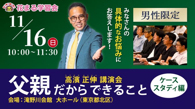 - 【講演会情報】12/10(水)@東京|高濱正伸「生き抜く力をつける ほめ方𠮟り方」