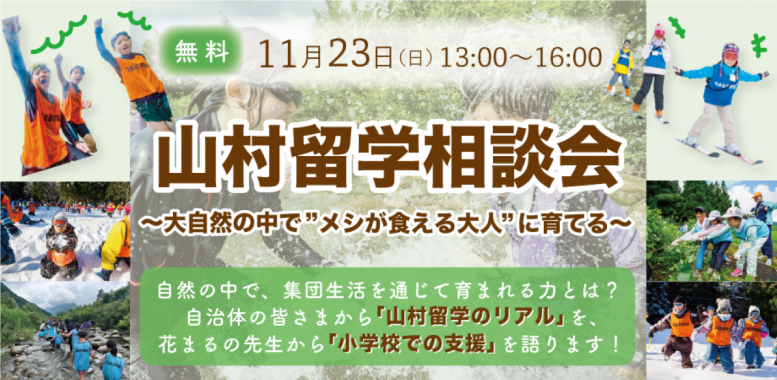 - 【イベント情報】11/23(日)@東京|山村留学相談会 ~大自然のなかで”メシが食える大人”に育てる~
