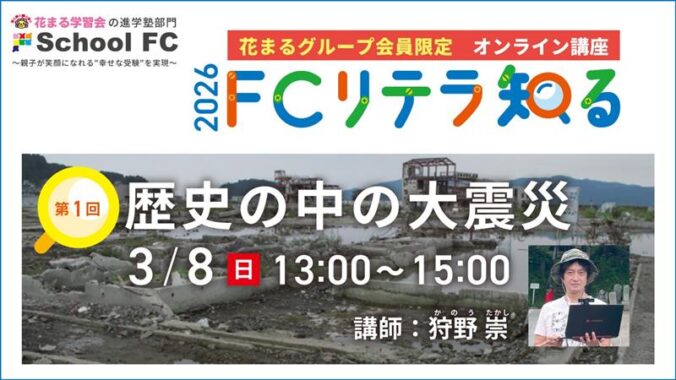 - 【花まるグループ会員限定・イベント情報】3/8(日)FCリテラ知る第1回「歴史の中の大震災」