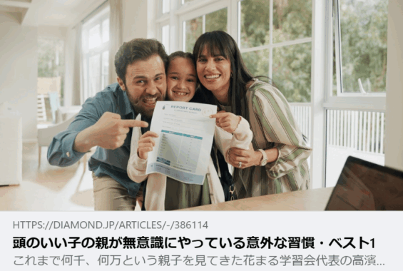 - 【掲載情報】頭のいい子の親が無意識にやっている意外な習慣・ベスト1|ダイヤモンド・オンライン