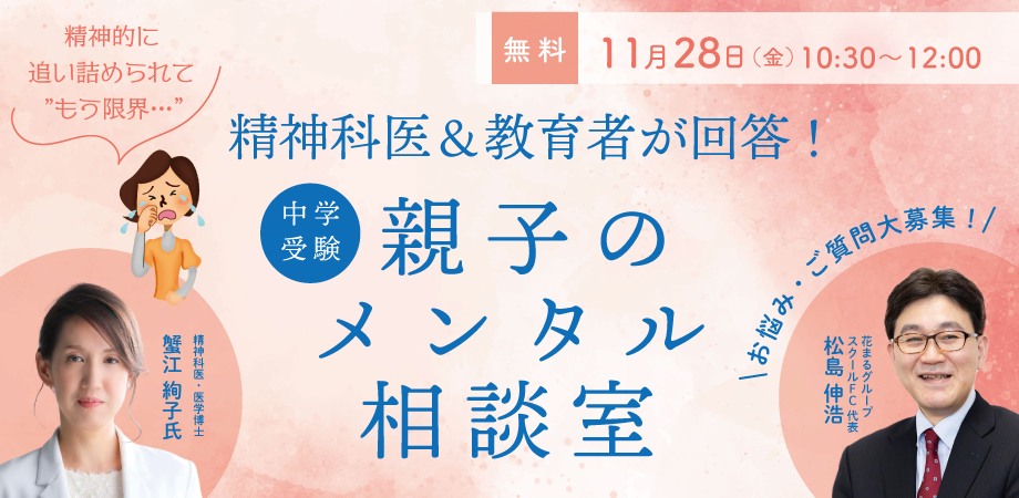蟹江絢子×松島伸浩「精神的に追い詰められて ”もう限界…” 精神科医&教育者が回答! 中学受験 親子のメンタル相談室 〜お悩み・ご質問大募集!〜」