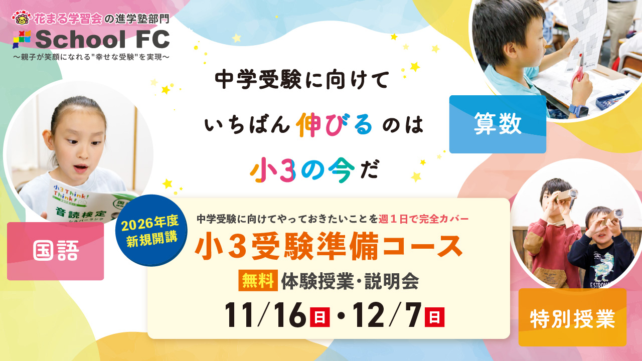 【新小学3年生対象】小3受験準備コース体験授業・説明会|スクールFC