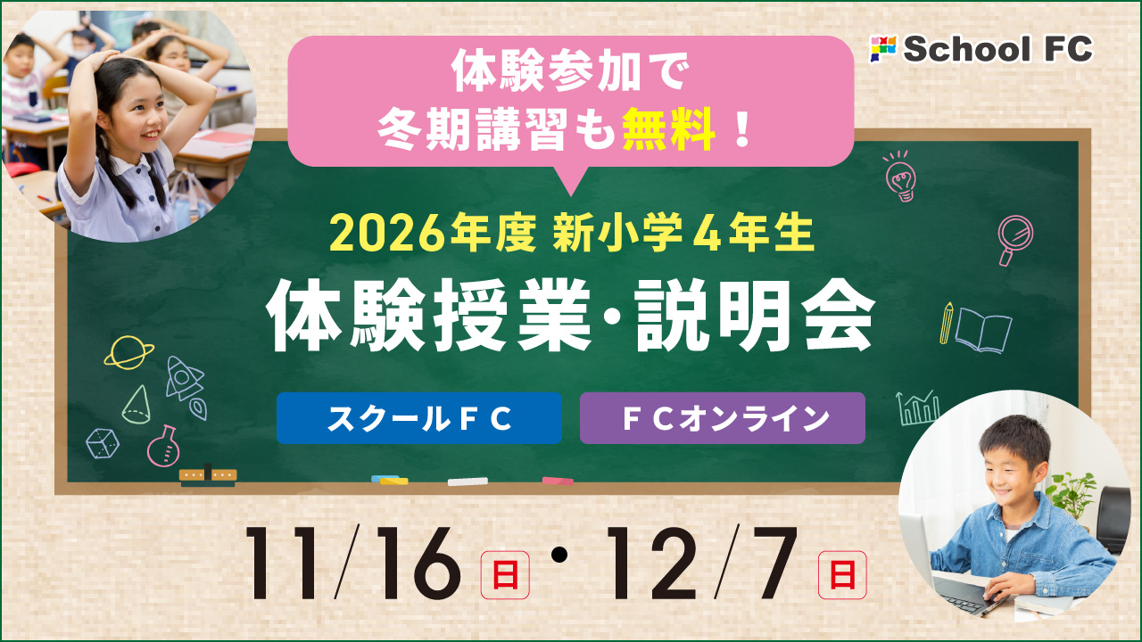 【新小学4年生対象】小4総合コース 体験授業・説明会|スクールFC
