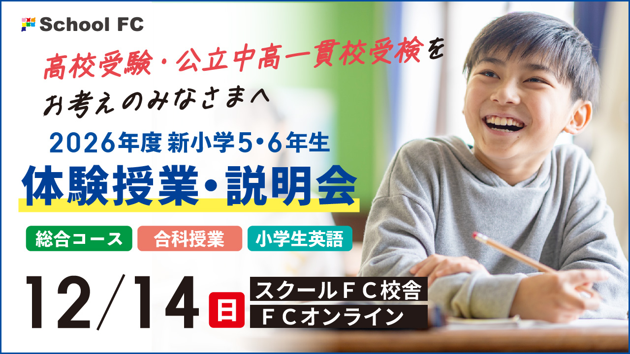 【新小学4年生・新小学5年生対象】小5・6総合コース・合科授業・小学生英語無料体験授業&説明会|スクールFC