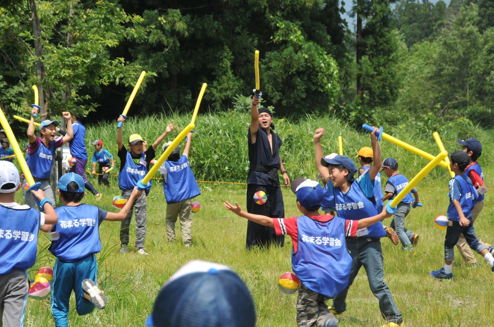 2~4軍に分かれ、スポンジ製の刀と紙風船(命)を用いて、戦国時代の合戦さながら天下統一を目指す、幼児から大人まで世代を超えて熱中できる花まるグループが生み出したオリジナルスポーツです。