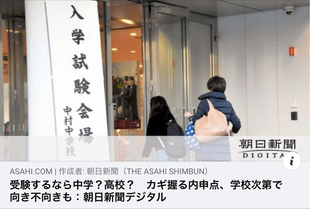【掲載情報】受験するなら中学?高校? カギ握る内申点、学校次第で向き不向きも|朝日新聞