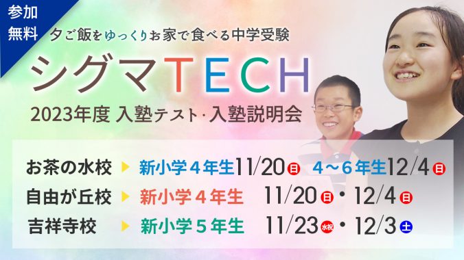 【新小学4~6年生対象】2023年度 シグマTECH 入塾テスト・入塾説明会