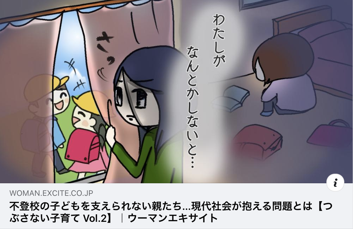 【掲載情報】不登校の子どもを支えられない親たち…現代社会が抱える問題とは【つぶさない子育て Vol.2】|ウーマンエキサイト