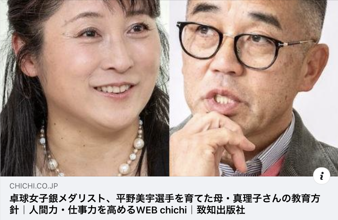 【掲載情報】卓球女子銀メダリスト、平野美宇選手を育てた母・真理子さんの教育方針|WEB chichi