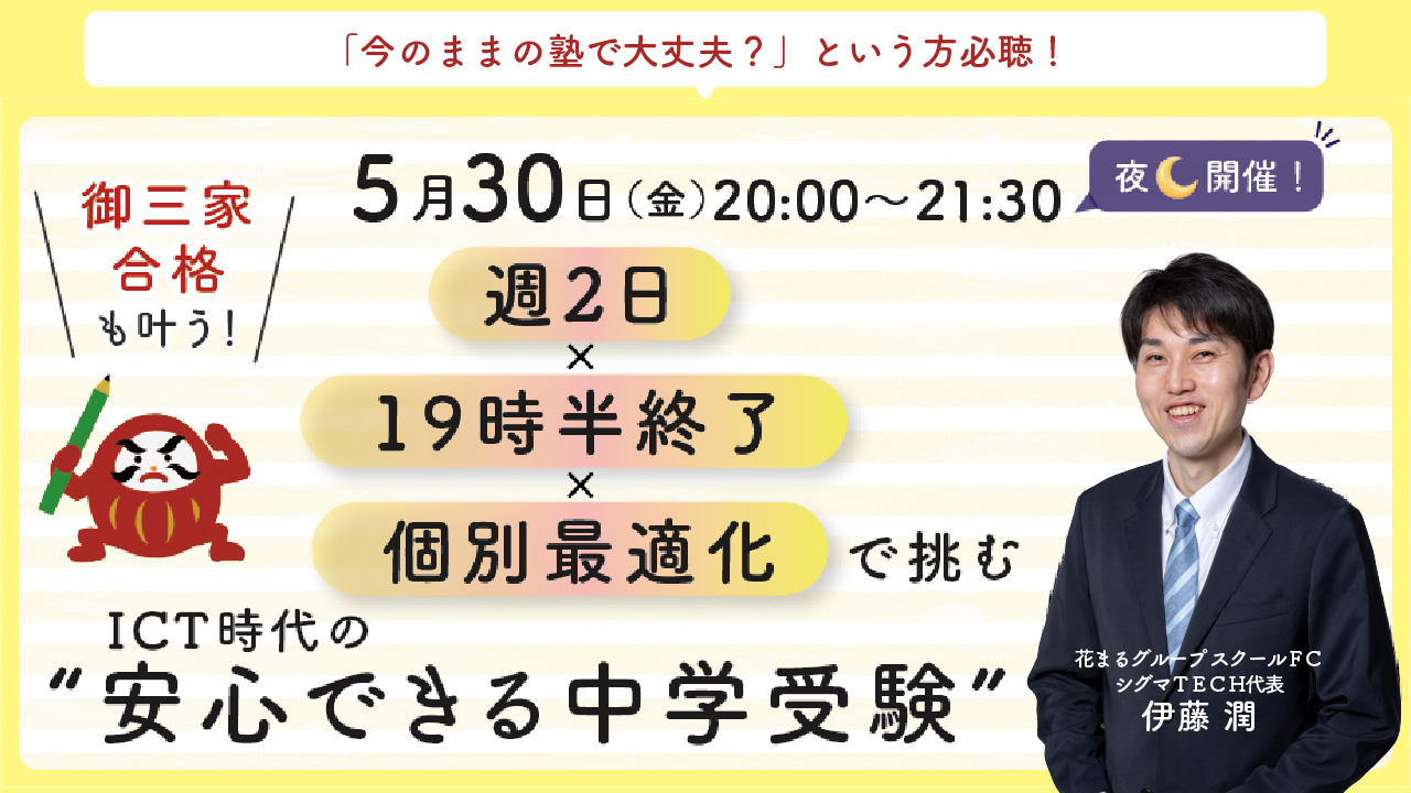伊藤潤「御三家合格も叶う! 週2日×19時半終了×個別最適化で挑む ICT時代の“安心できる中学受験”」