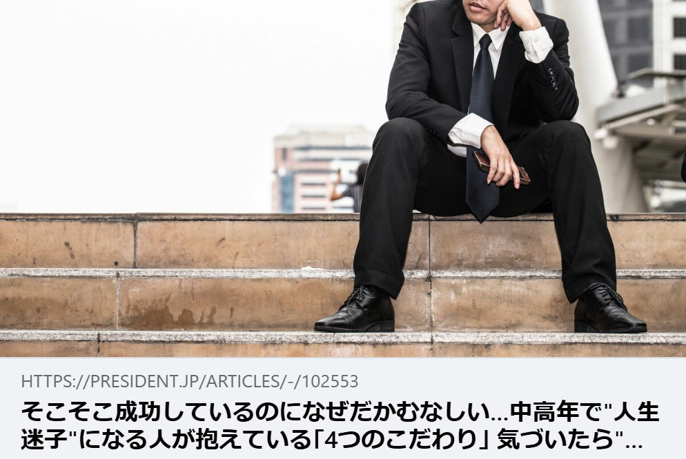 【掲載情報】そこそこ成功しているのになぜだかむなしい…中高年で"人生迷子"になる人が抱えている「4つのこだわり」|PRESIDENT Online(プレジデントオンライン)