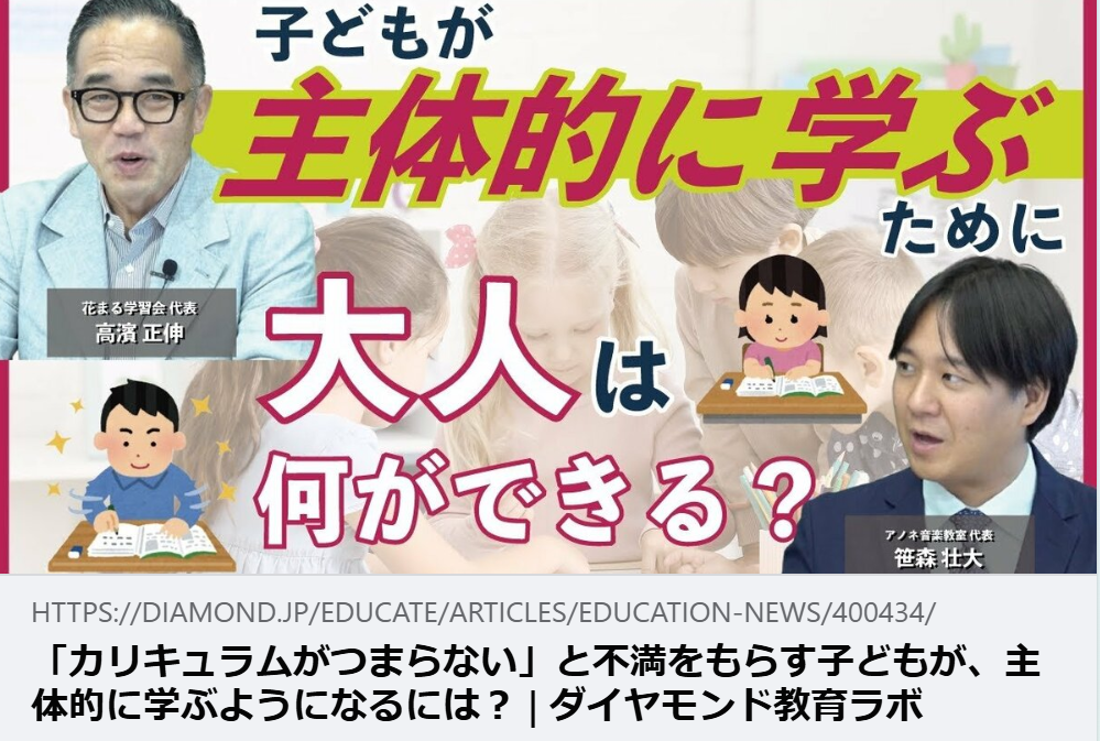 【掲載情報】「カリキュラムがつまらない」と不満をもらす子どもが、主体的に学ぶようになるには?|DIAMOND教育Labo