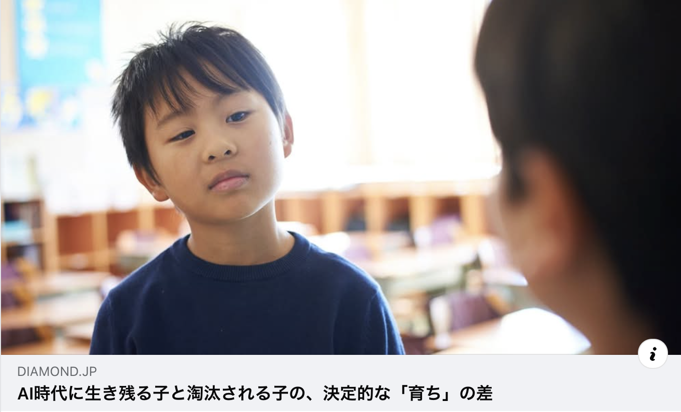 【掲載情報】AI時代に生き残る子と淘汰される子の、決定的な「育ち」の差|ダイヤモンド・オンライン