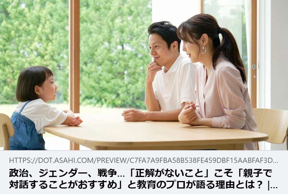 【掲載情報】政治、ジェンダー、戦争…「正解がないこと」こそ「親子で対話することがおすすめ」と教育のプロが語る理由とは?|AERA with Kids +