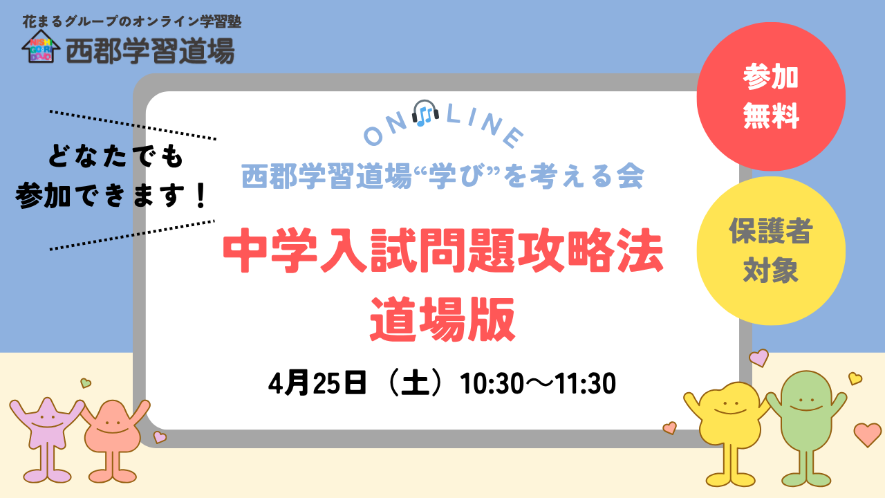月1回、保護者のみなさまと道場のスタッフがともに“学び”について考える会。今回は中学受験の問題を具体的に検討します!