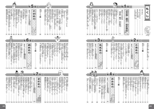 「旧石器時代から始まり平成時代まで」の主なできごとが、すべて4コママンガになった日本史の教材が登場! 日本史の大きな流れをマンガでサクッとつかめます。「文化史」は巻末にまとめました。「食、建物、芸術、商工業、文学」などの変化がわかりやすくなっています。