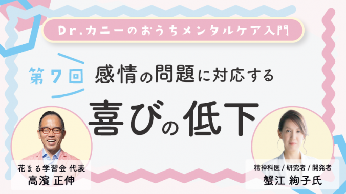 - 【YouTubeで公開中!】Dr.カニーのおうちメンタルケア入門第7回「感情の問題に対応する”喜びの低下”について」|花まる子育てカレッジ