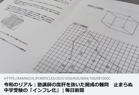 - 【掲載情報】塾講師の度肝を抜いた開成の難問 止まらぬ中学受験の「インフレ化」|毎日新聞デジタル