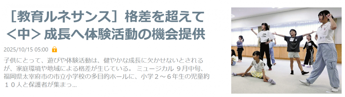 - 【掲載情報】[教育ルネサンス]格差を超えて<中>成長へ体験活動の機会提供|読売新聞オンライン