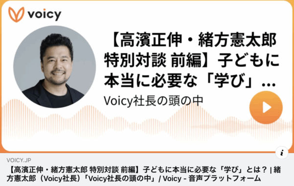- 高濱出演!|Voicy【高濱正伸・緒方憲太郎 特別対談 前編】子どもに本当に必要な「学び」とは?