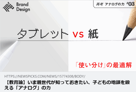 - 掲載情報|【教育論】いま親世代が知っておきたい、子どもの地頭を鍛える「アナログ」の力|NewsPicks