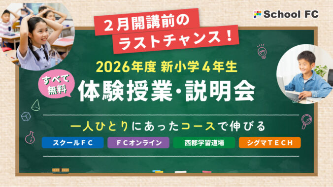 - 【イベント情報】2026年度新小学4年生対象 スクールFC「小4総合コース」追加体験授業&説明会
