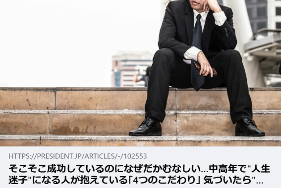 - 【掲載情報】そこそこ成功しているのになぜだかむなしい…中高年で"人生迷子"になる人が抱えている「4つのこだわり」|PRESIDENT Online(プレジデントオンライン)
