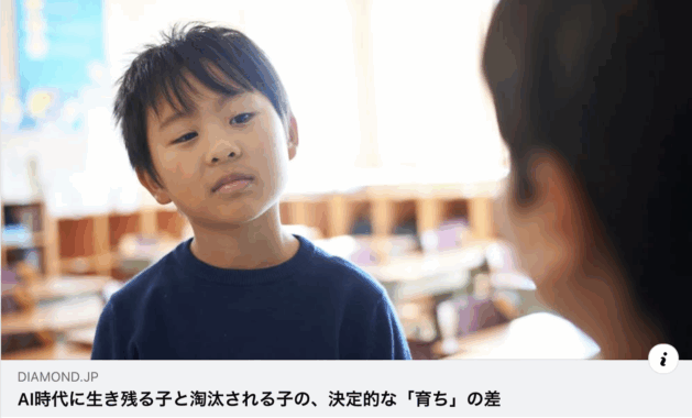 - 【掲載情報】AI時代に生き残る子と淘汰される子の、決定的な「育ち」の差|ダイヤモンド・オンライン