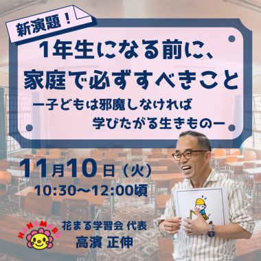 - 【講演会情報】12/10(金)高濱正伸 講演会「高校受験を活かし、魅力的で骨太な人に育てる」【YouTubeライブ配信】