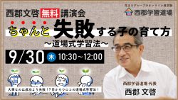 - 【講演会情報】9/30(木)西郡文啓「ちゃんと失敗する子の育て方~道場式学習法~」|無料・オンライン・要申込