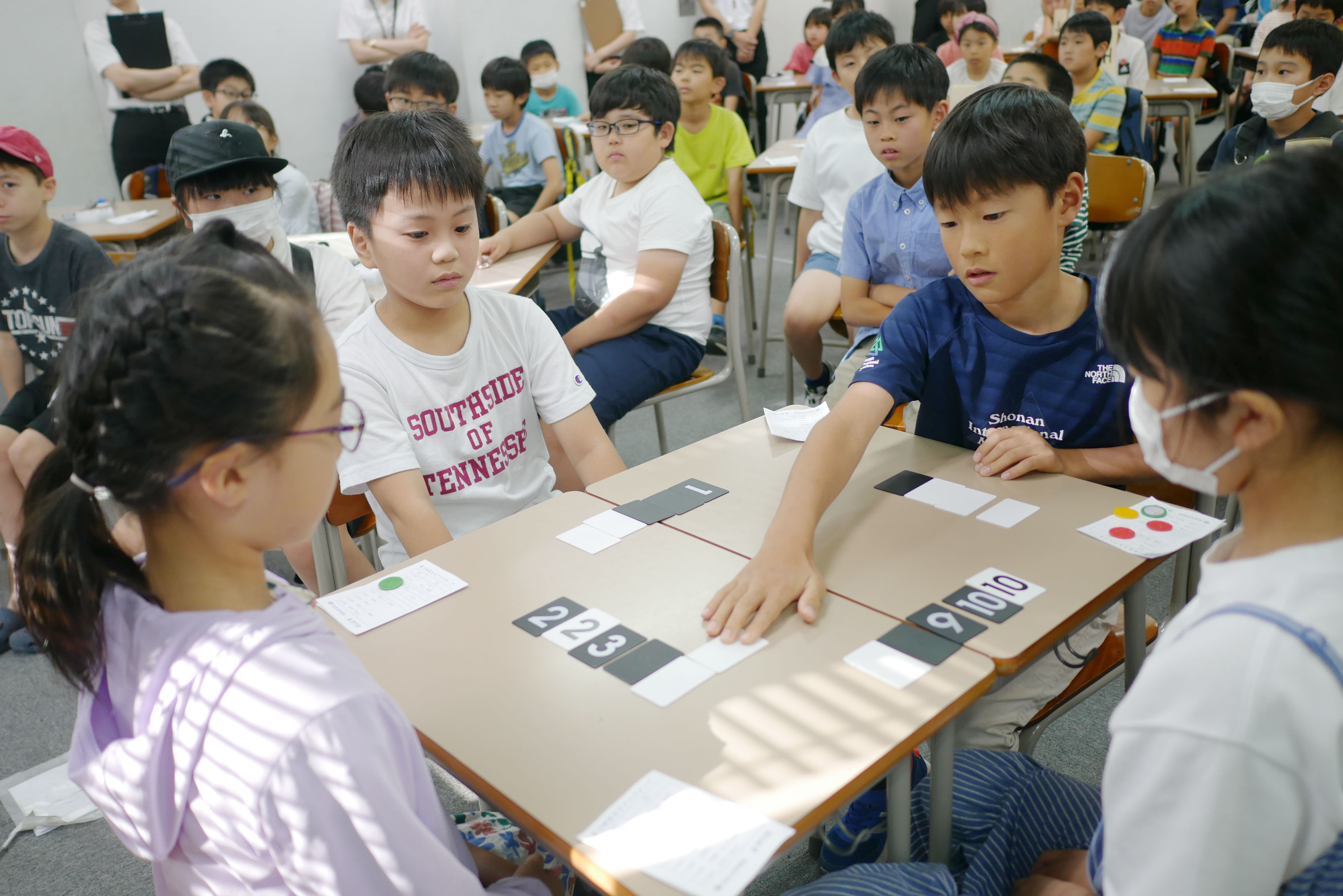 塾内公式大会「花まるアルゴカップ」。小学3~6年生137名が参加し、普段とは異なる緊張感の中で、集中してアルゴゲームを戦い抜きました。決勝に進出しガッツポーズをする嬉しさ、平然とした表情の裏で感じている悔しさ、思うようにいかずにこぼれる涙、それぞれの想いが、さらなる成長の糧になります。今後も安全性を考慮し、アルゴカップを盛り上げてまいります。